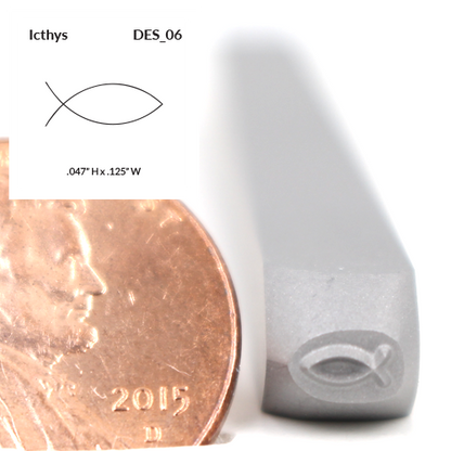 Designed with a sharp face, these stamps can mark a variety of different materials and are ideal for jewelry and hard metals. This stamp features an Icthys design. When you need to mark a popular design, that's when Design Stamps come in handy. Moons, Lotus Flowers, 4 Leaf Clovers and more are all available. Pick up a few of your favorite designs and get a discount for purchasing more. Made with the high quality standards that Infinity Stamps is known for, you will not find this level of detail anywhere else on the market.